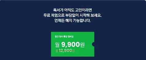 월정액 금액도 책한권 구매하는 것에 비해 크게 부담 없습니다.