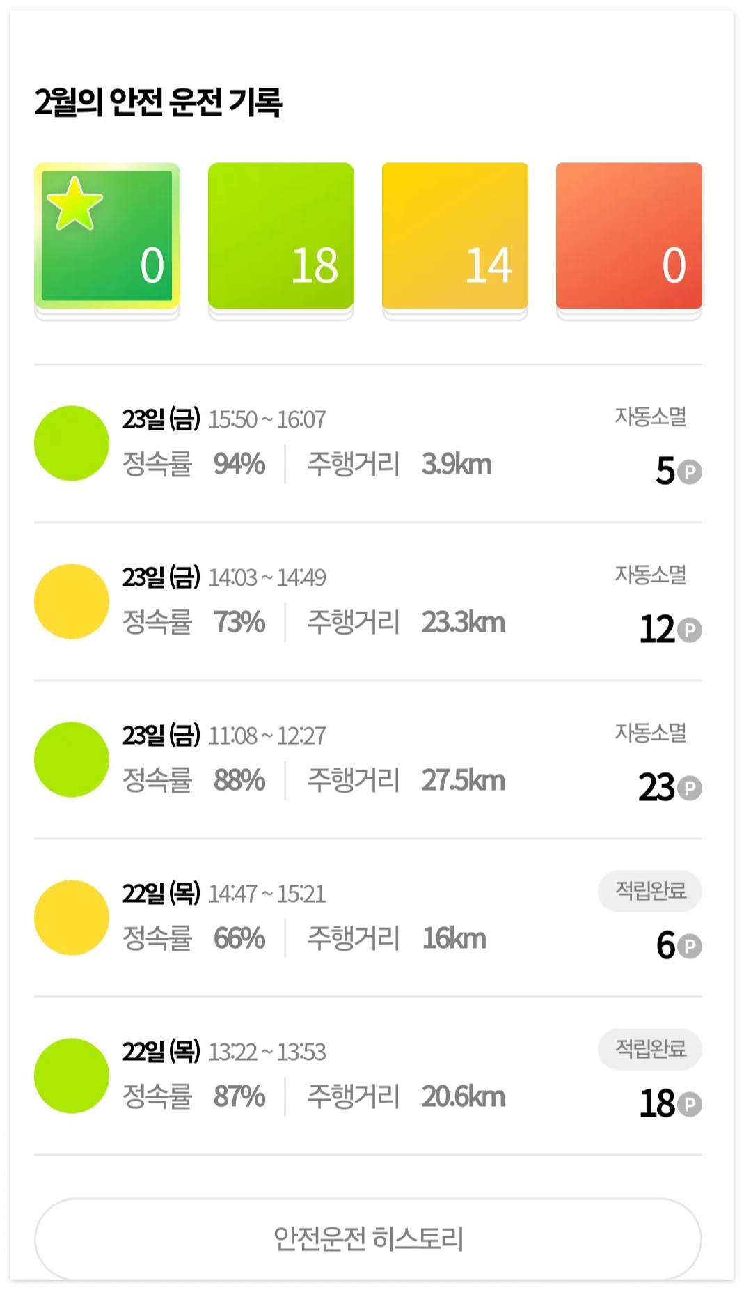 운전 히스토리를 한눈에 볼 수 있는 것도 큰 장점입니다.
